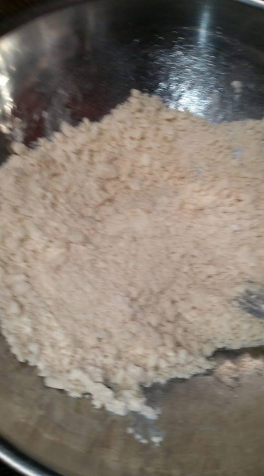 Add water and work until dry ingredients are moist. Be careful not to overwork dough so it doesn't become tough when cooked.